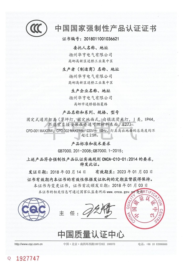 本公司生產(chǎn)設(shè)備完善,技術(shù)方面先進(jìn),檢測(cè)設(shè)備齊全,工藝操作精湛,質(zhì)量性能可靠。已被江蘇省揚(yáng)州市評(píng)為“重合同、守信用”企業(yè),被質(zhì)量技術(shù)監(jiān)督局評(píng)為“質(zhì)量信得過(guò)企業(yè)”,被江蘇省戰(zhàn)略委員會(huì)評(píng)為“省照明十佳”企業(yè),并且已經(jīng)通過(guò)ISO 9001質(zhì)量體系認(rèn)證、ISO 14001環(huán)境管理體系認(rèn)證、ISO45001職業(yè)健康管理體系認(rèn)證,榮獲中國(guó)質(zhì)量認(rèn)證多項(xiàng)認(rèn)證證書:及“CCC”認(rèn)證、中國(guó)節(jié)能產(chǎn)品認(rèn)證證書、太陽(yáng)能產(chǎn)品CQC認(rèn)證證書(金太陽(yáng)認(rèn)證)、中國(guó)環(huán)保產(chǎn)品Ⅱ型認(rèn)證證書,國(guó)際歐盟頒發(fā)的CE認(rèn)證,公司發(fā)展多年通過(guò)自主創(chuàng)新榮獲照明行業(yè)多項(xiàng)發(fā)明新型,具有照明工程國(guó)家“雙甲”資質(zhì),城市及道路照明工程ZY承包壹級(jí)、照明工程設(shè)計(jì)專項(xiàng)甲。